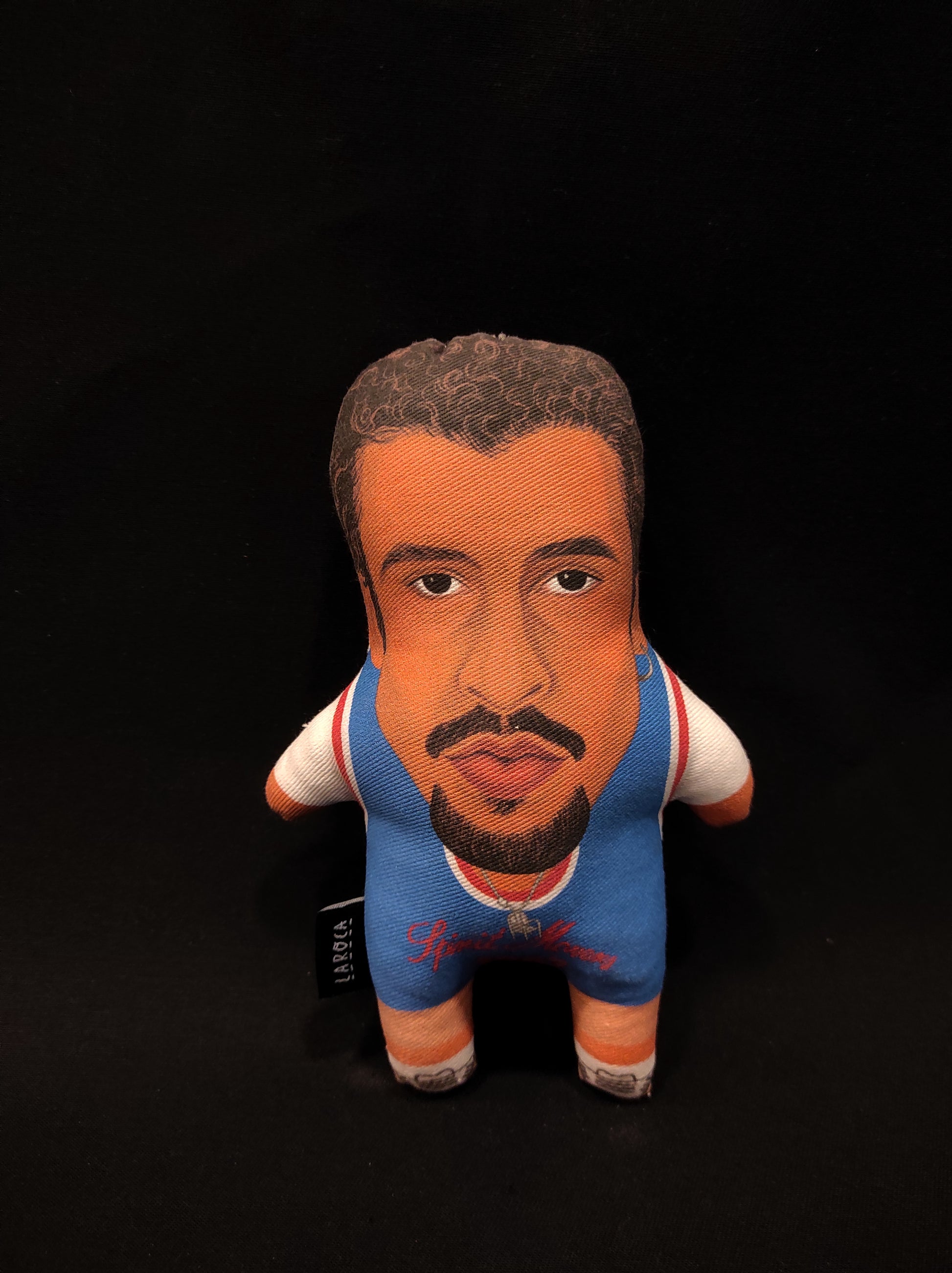 Bonecos pintados à mão em tecido baseados em figuras icónicas.