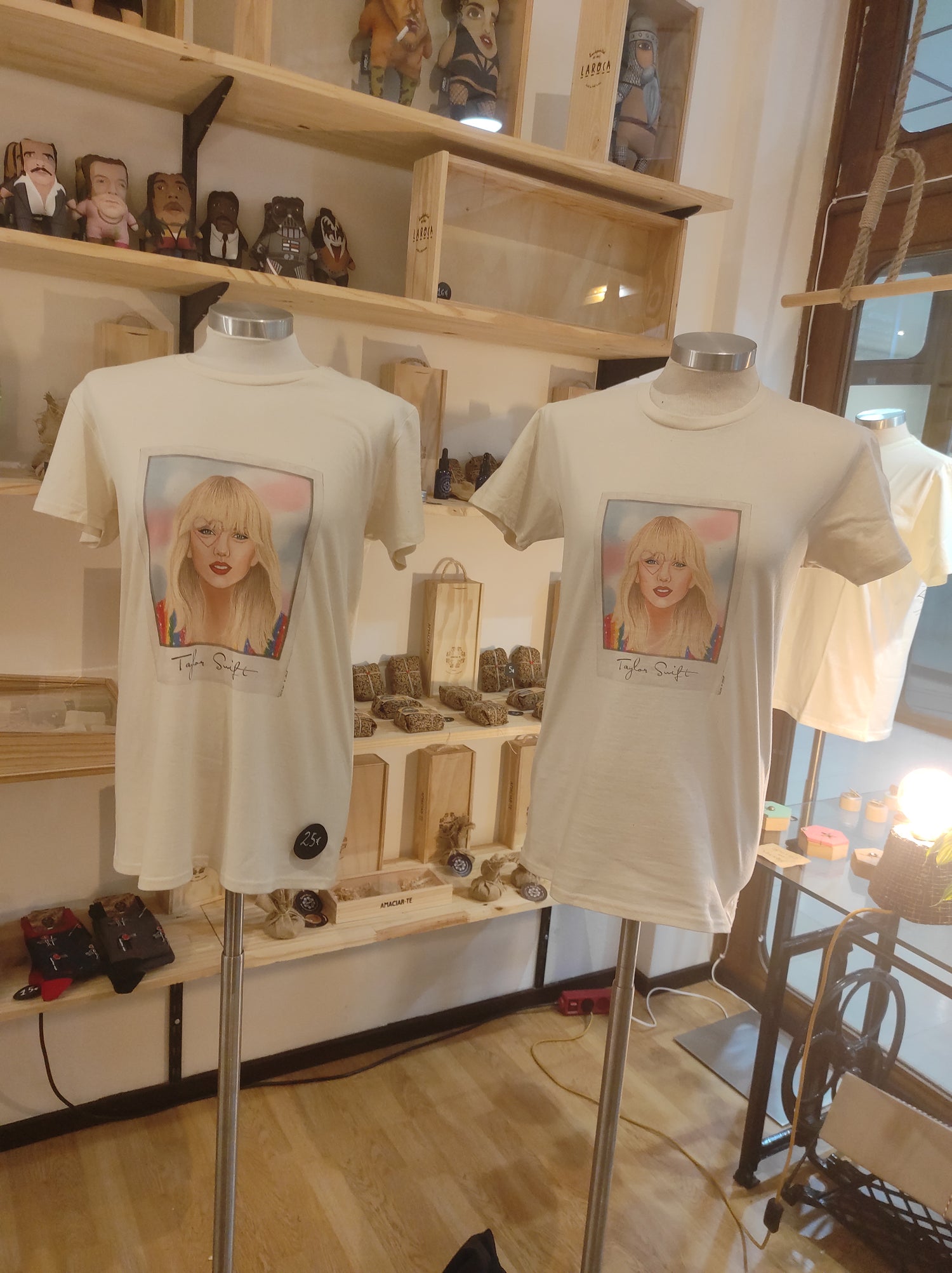 100% cotton t-shirts printed with water-based inks using the direct printing method.